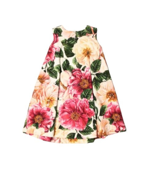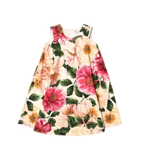 Abito girocollo, giromanica, fantasia floreale all over, chiusura sul retro.