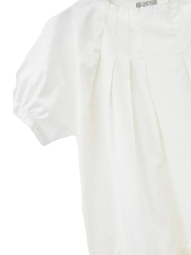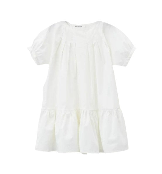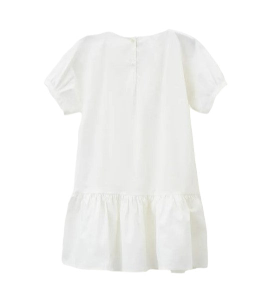 Abito girocollo in cotone a manica corta, balze all'orlo.