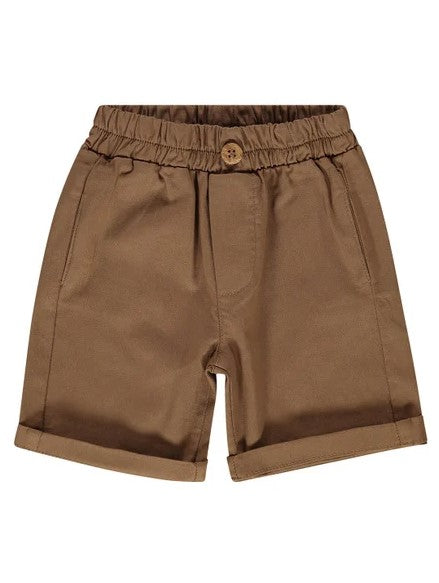 Bermuda in cotone con vita elasticizzata, taschine a filetto laterali, bottone decorativo sul davanti.