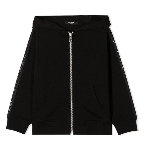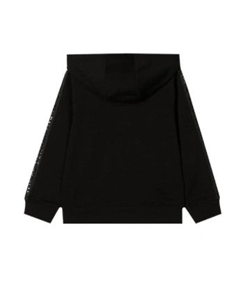 Felpa con zip e cappuccio, logo stampato sulle maniche.