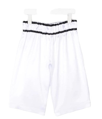 Pantalone cropped in raso colore bianco con elastico in vita gamba ampia, vestibilità comoda, logo applicato. Tessuto: 100% raso. Lavaggio max 40°.