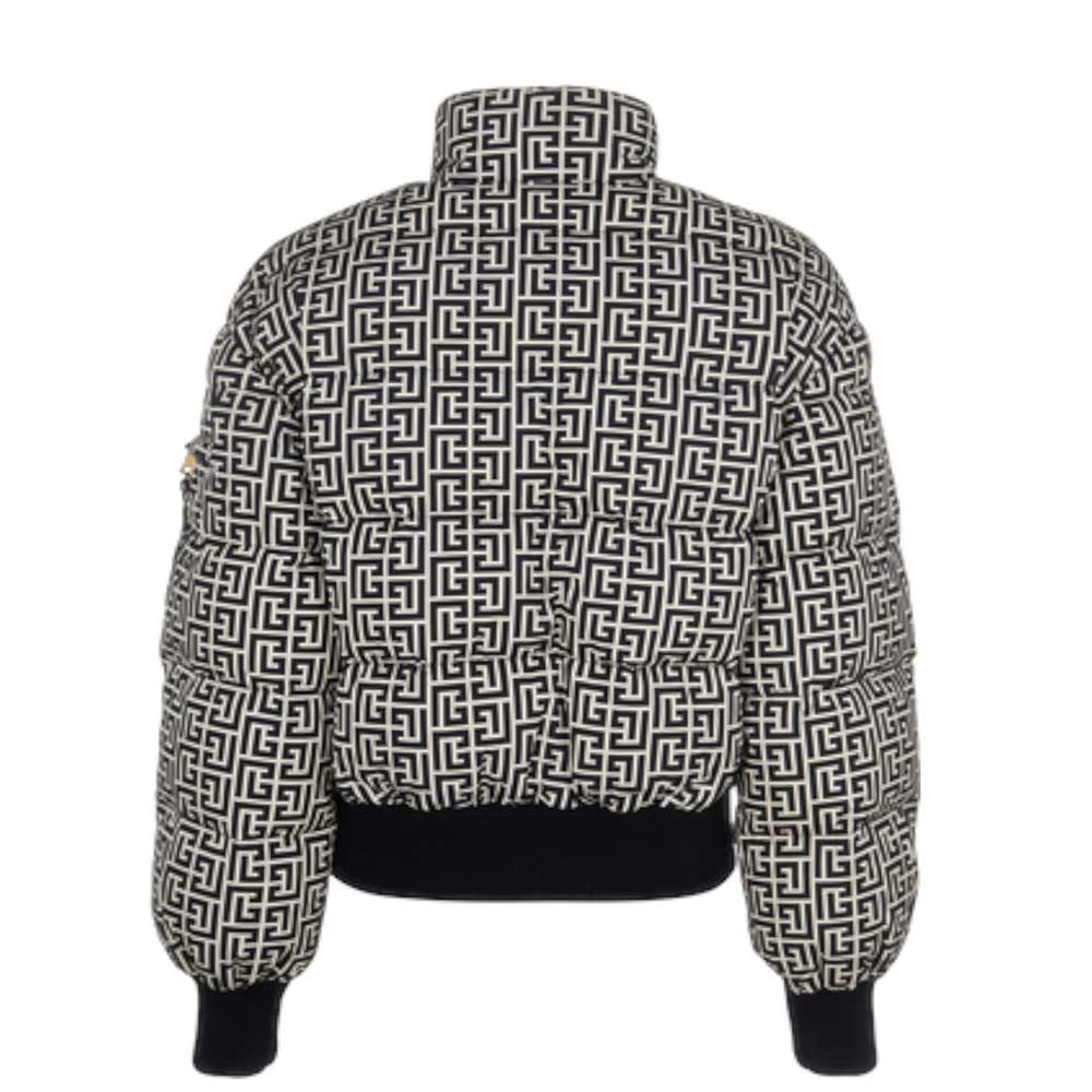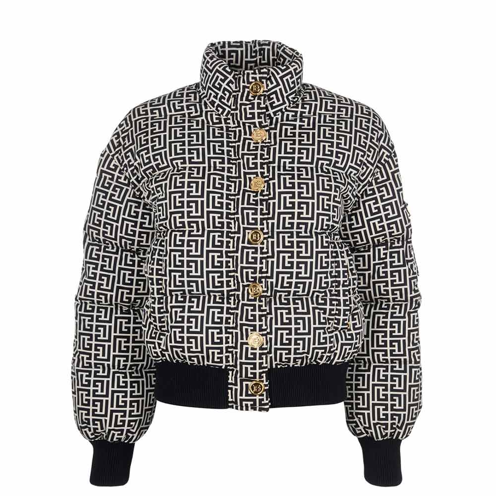Giubbino imbottito realizzato in nylon, caratterizzato da collo alto, chiusura frontale con zip e bottoni logati a pressione, maniche lunghe con polsi a coste, due tasche laterali e orlo a coste. È decorato con motivo logo all-over.