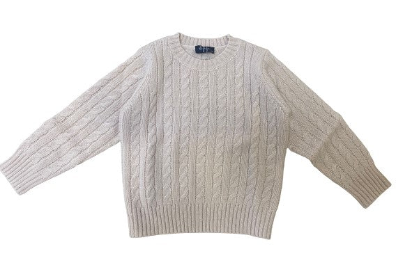 Maglia girocollo motivo a treccia, collo orlo e polsi in costa.