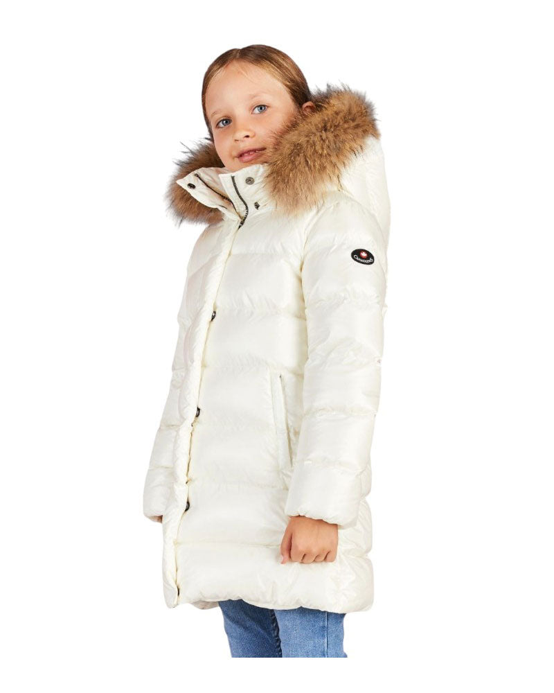 Giubbino Alya fur da bambina realizzato in microfibra leggera con imbottitura interna in piuma. Presenta apertura con zip centrale e patta con snaps automatici, cappuccio fisso con vera pelliccia di procione rimovibile, due tasche laterali con chiusura a zip. Eccellente protezione termica e protezione dalla pioggia grazie al trattamento idrorepellente.