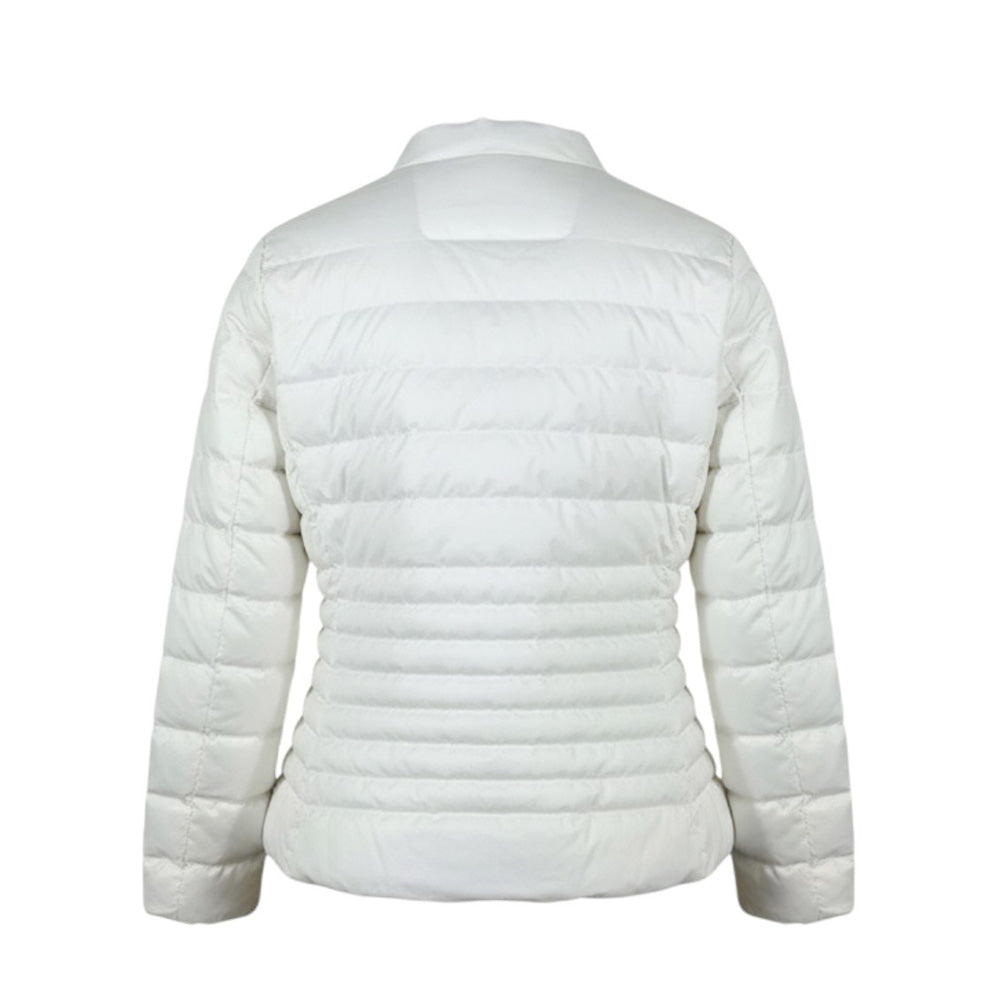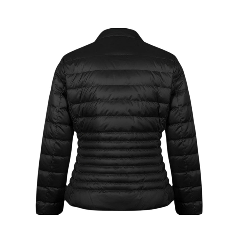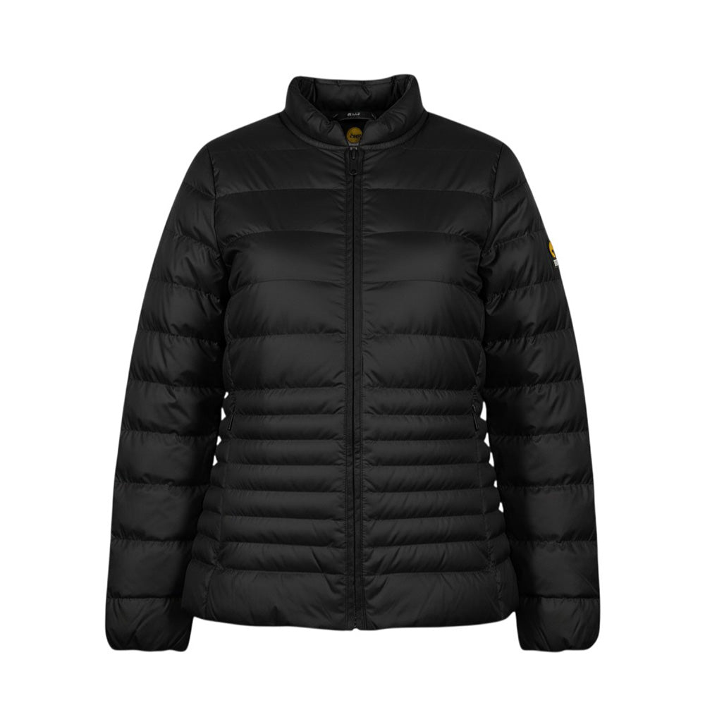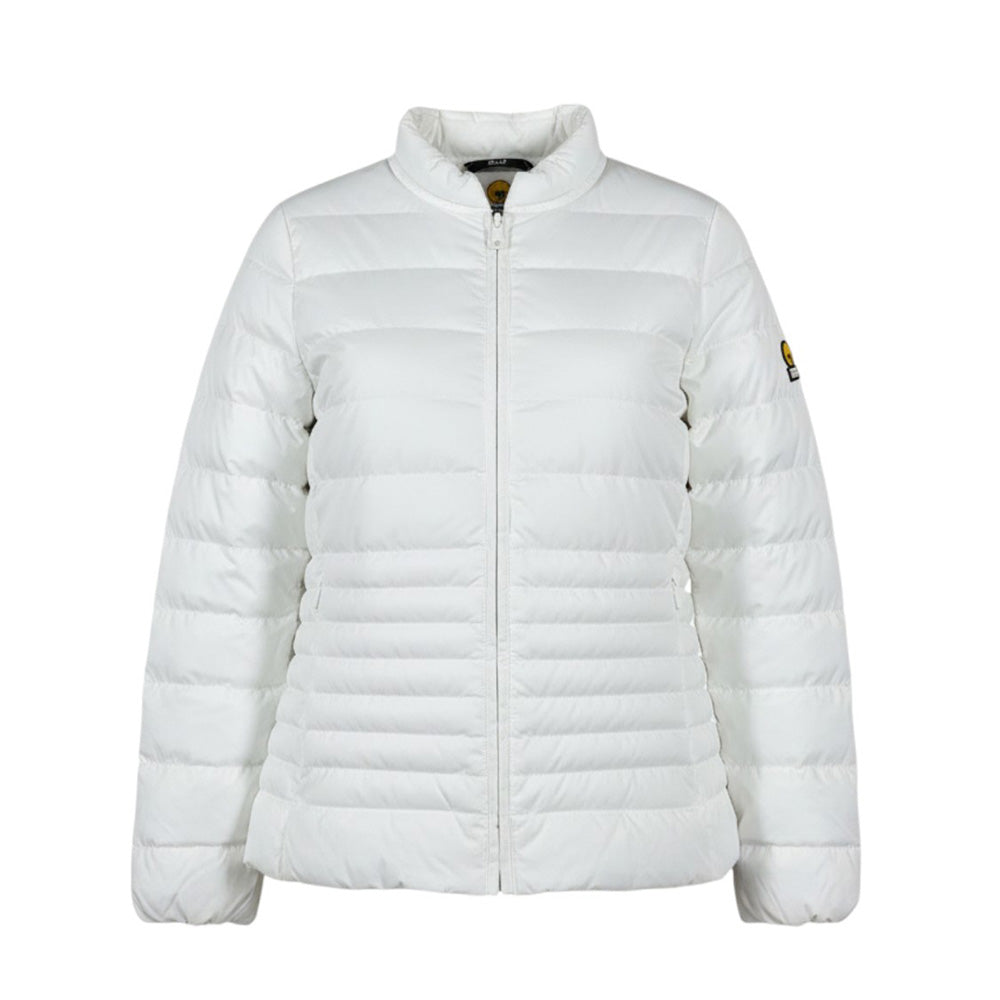 Giubbino 100 grammi da bambina, caratterizzato da design trapuntato, colletto rotondo, chiusura frontale con zip, maniche lunghe con polsi elasticizzati e due tasche laterali con zip. È decorato con patch logo applicata sulla manica.