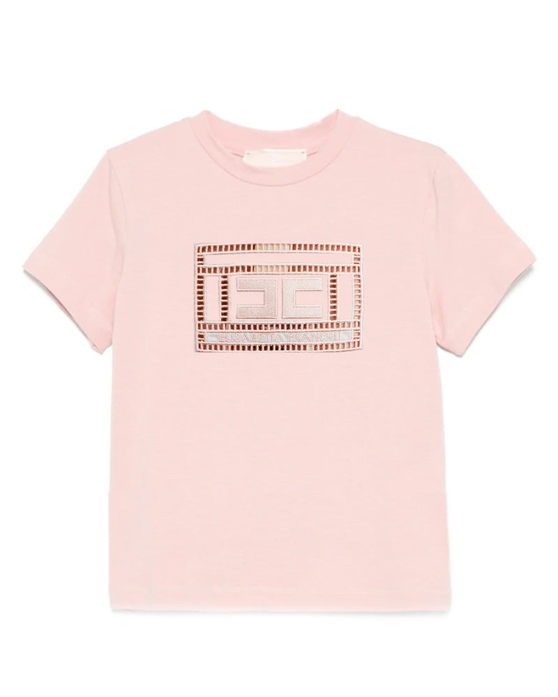 T-shirt in cotone di Elisabetta Franchi La Mia Bambina. Presenta collo tondo, maniche corte, logo e simbolo del brand sul davanti.