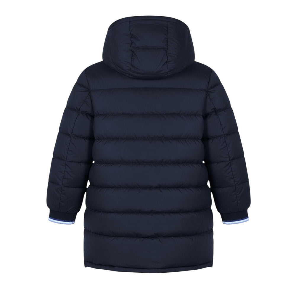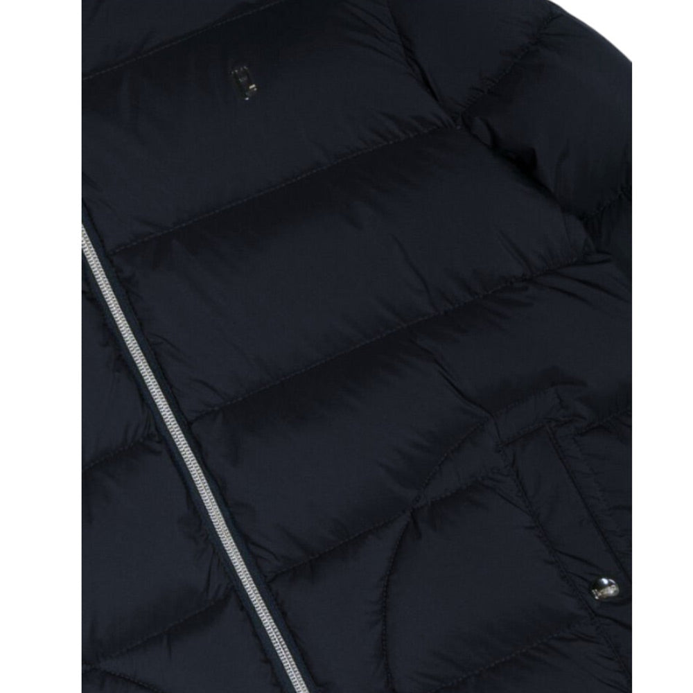 Herno Giubbino blu trapuntato con cappuccio e logo PI000160G