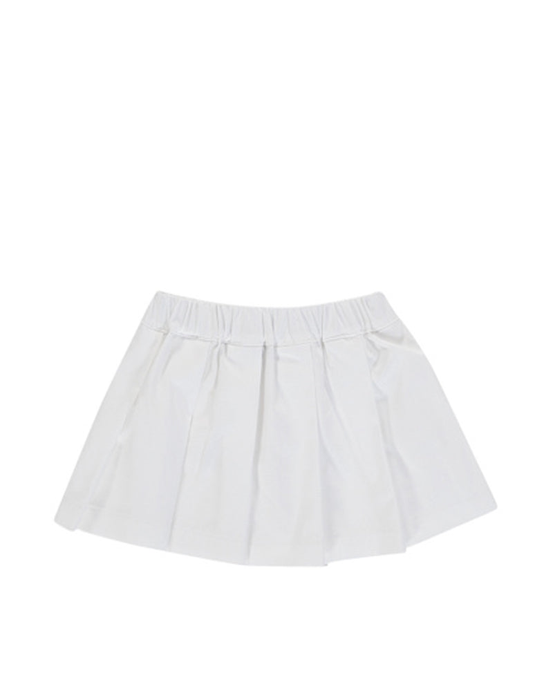 Gonna corta realizzata in cotone tinta unita a pieghe, vita elasticizzata.