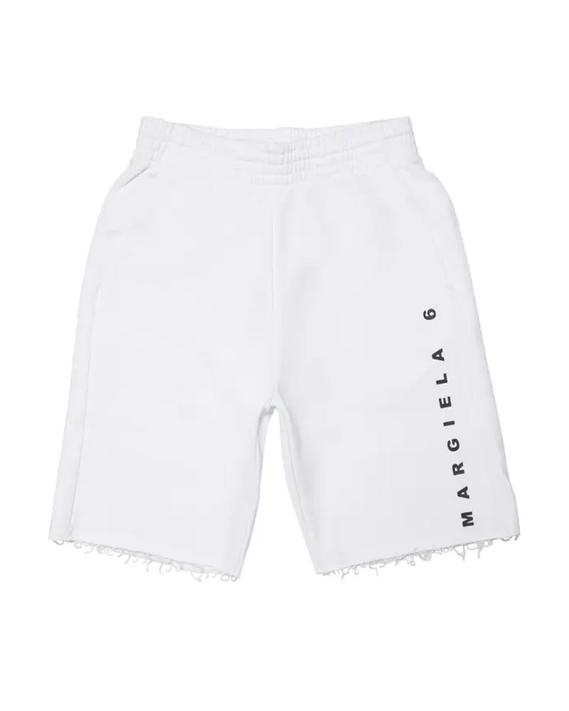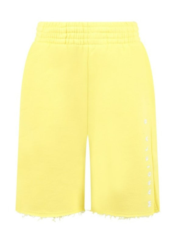 Bermuda in felpa di cotone. Vita elasticizzata, tasca america, logo applicato sul davanti, orlo a taglio vivo.