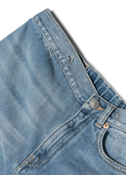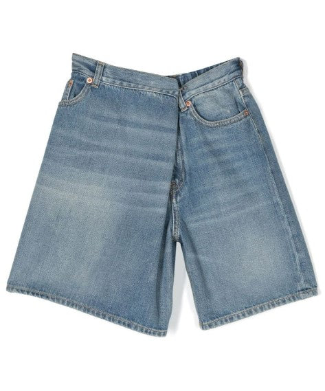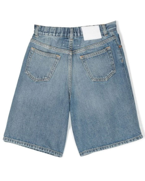 Shorts in denim di cotone, modello cinque tasche. Chiusura frontale con bottone e zip, lunghezza al ginocchio.