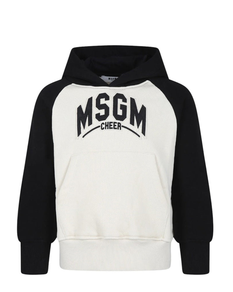 Felpa con cappuccio realizzata in cotone garzato. Presenta maniche lunghe a contrasto, tasca a marsupio frontale, polsi e orlo a coste. È decorata con logo ricamato a rilievo sulla parte anteriore.