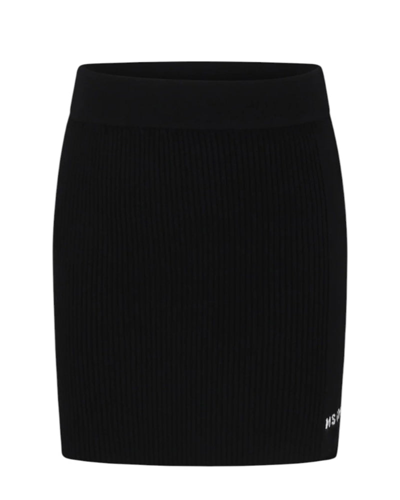 Gonna realizzata in maglia a coste da bambina con vita elasticizzata. È decorata con logo MSGM bianco sulla parte anteriore.