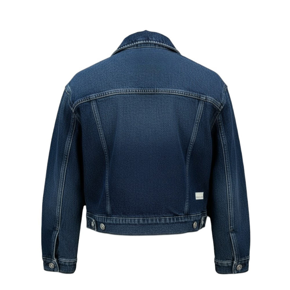Giubbino imbottito, realizzato in denim di cotone. Presenta colletto a punta, chiusura frontale con bottoni, fodera in eco-shearling, maniche lunghe e orlo dritto. È decorato con patch logo applicata sul retro.
