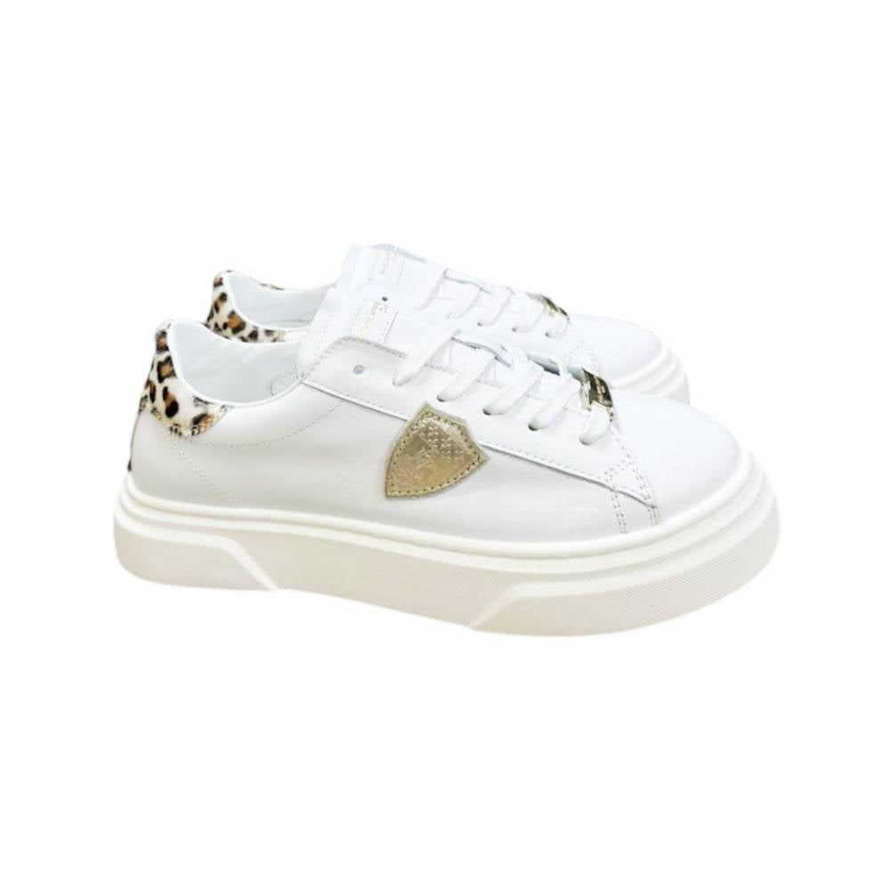 Philippe Model Paris Sneakers in pelle, fodera in pelle, dettagli maculati, logo laterale , cuciture a vista, chiusura con lacci.