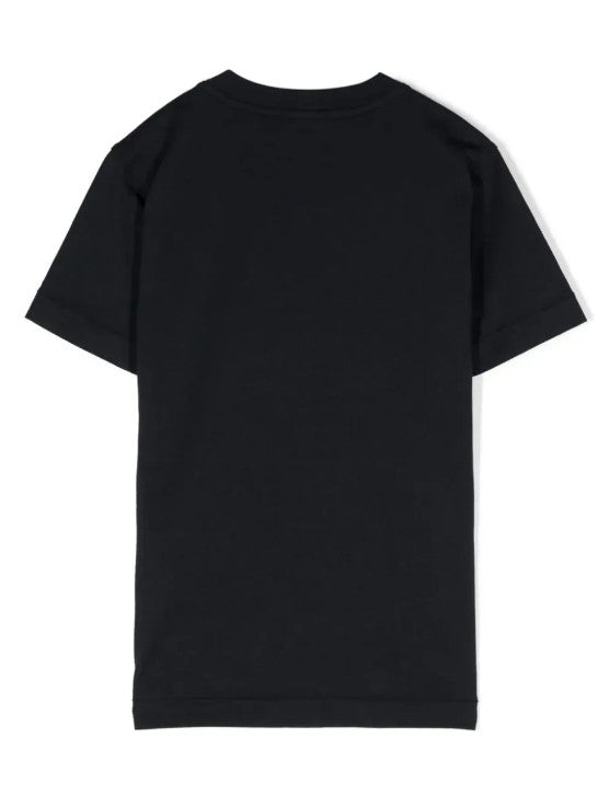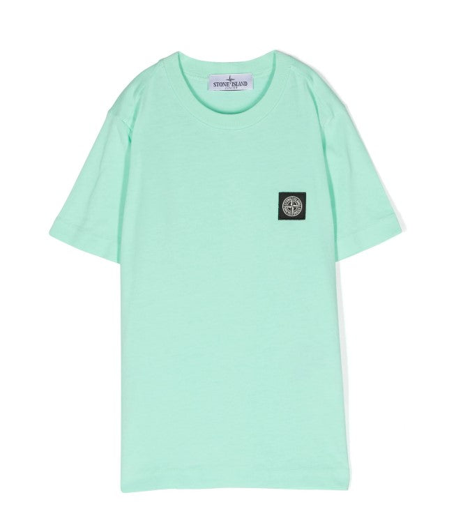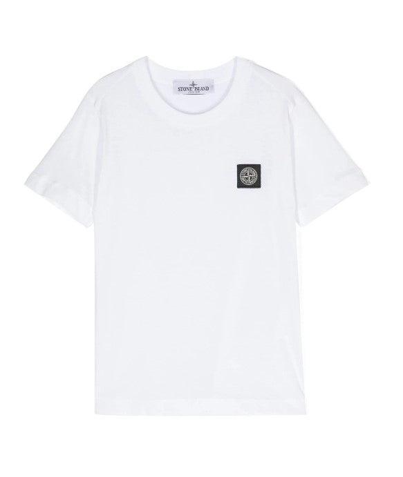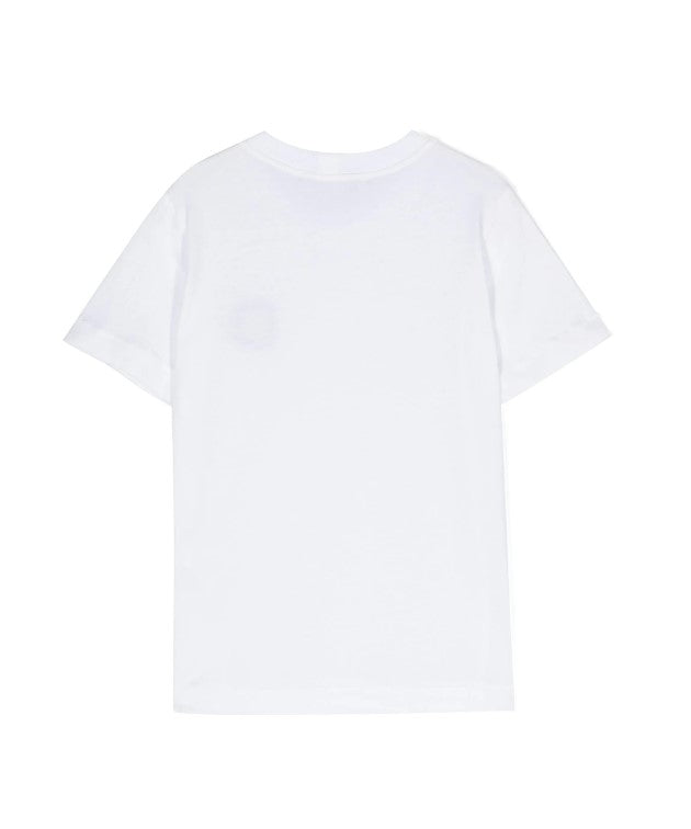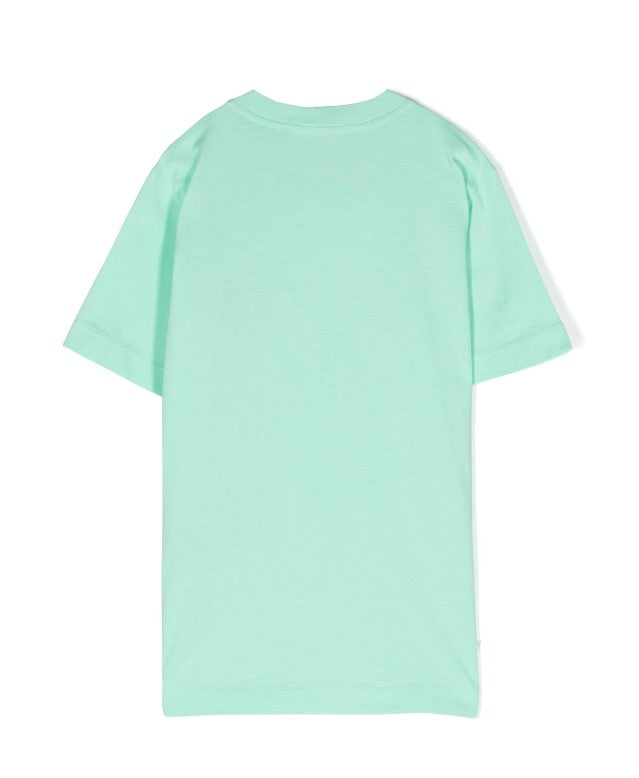 T-shirt bimbo girocollo a maniche corte, taglio dritto, logo applicato sul petto.