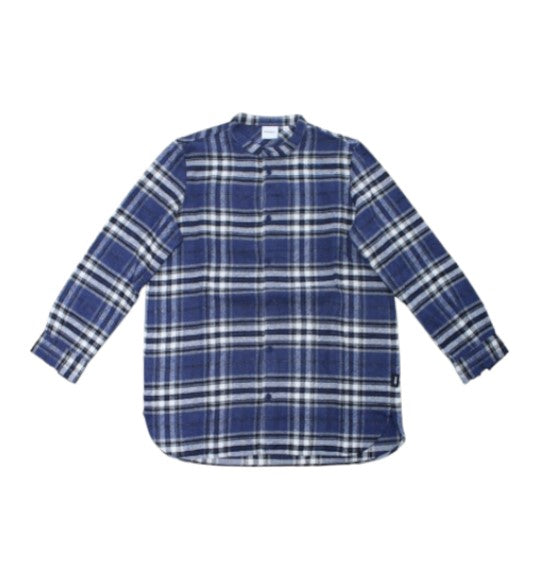 Camicia bambino in flanella con collo alla coreana, chiusura frontale con bottoni, fantasia a quadri.