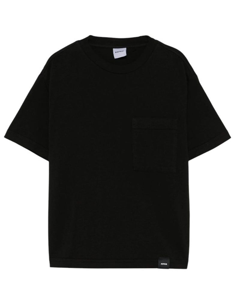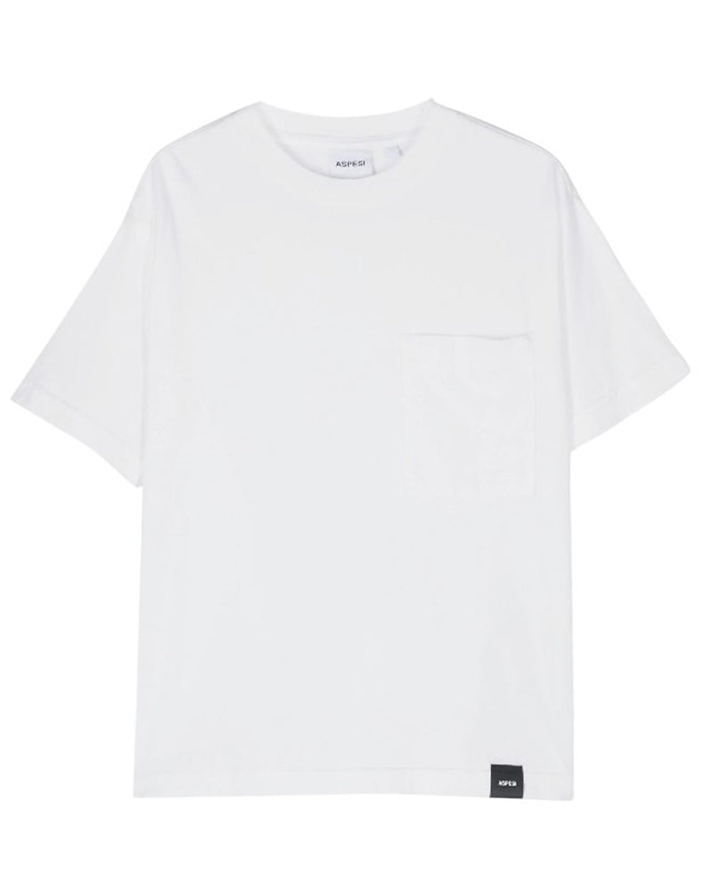 T-shirt girocollo a maniche corte realizzata in jersey di cotone da bambino. È decorata con taschino applicato sul petto e label logo sul davanti.