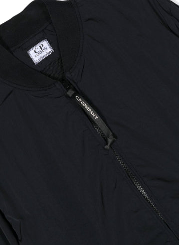 Giubbino in nylon, chiusura anteriore con zip e clips. Tasche applicate sul davanti.