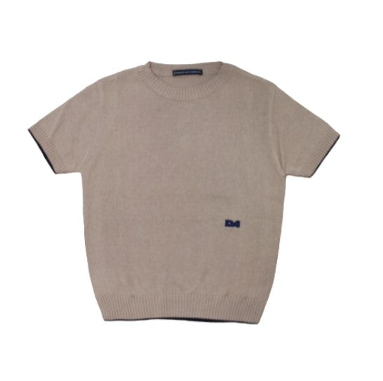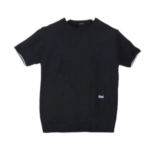 Maglia girocollo a manica corta realizzata in filo di cotone, ricamo logo in contrasto sul davanti, rifiniture a costa.