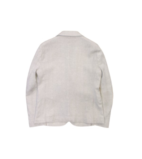 Giacca monopetto, spacche laterali, tasche applicate, bottoni di chiusura.