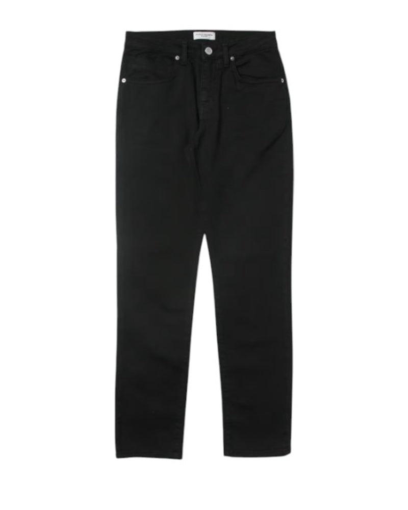 Jeans neri da bambino realizzati in denim di cotone, modello cinque tasche, caratterizzati da taglio slim, chiusura frontale con bottone e zip, vita regolabile grazie ad elastico interno con bottoni.