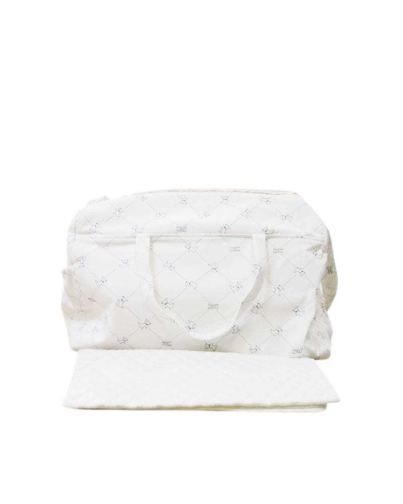 Rischi e sfida il mondo con la borsa mamma Elisabetta Franchi! Porta tutto quello che la tua piccola avventuriera ha bisogno con la borsa avorio/nero con logo a contrasto e motivo losanga. Incluso un comodo fasciatoio per i cambi on-the-go. Realizzato in 100% cotone per un comfort irresistibile.
