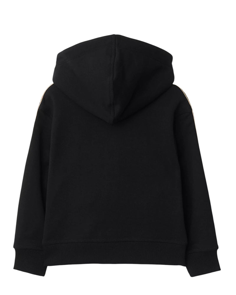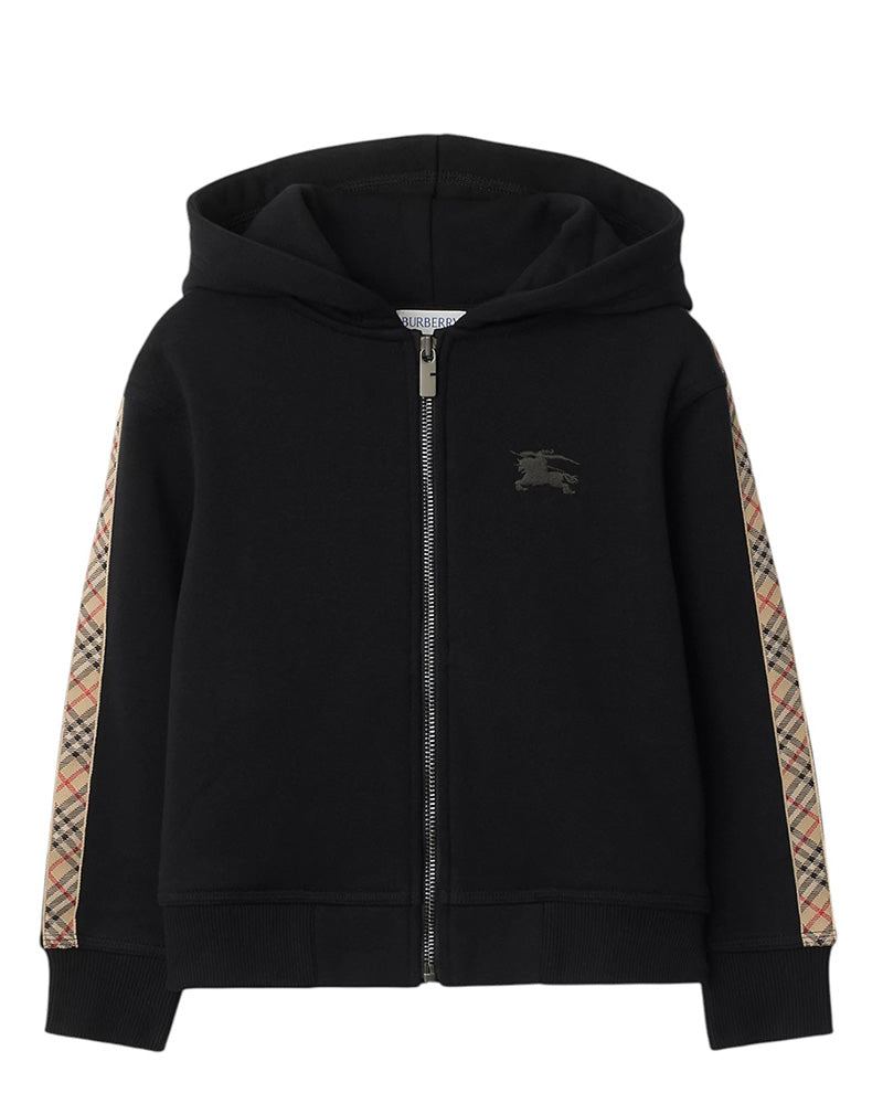Burberry Felpa nera con cappuccio, zip e finiture Check 8108062