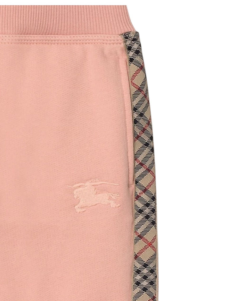 Pantaloni jogger in cotone effetto spugna, caratterizzati da vita elasticizzata con coulisse interna, profili laterali in Burberry Check nel iconico beige archivio, due tasche laterali a filetto e fondo con elastico alla caviglia. Il modello è decorato dall'Equestrian Knight Design ricamato tono su tono.