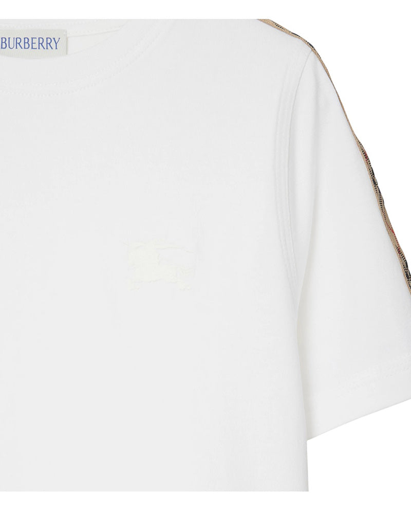 Burberry T-shirt bianca in jersey con finiture Check 8108049