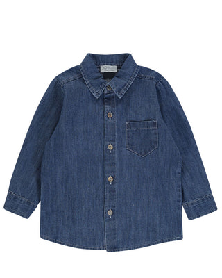 Nine:inthe:morning Camicia grigia in denim con patch logo 9JF25-IAM10
