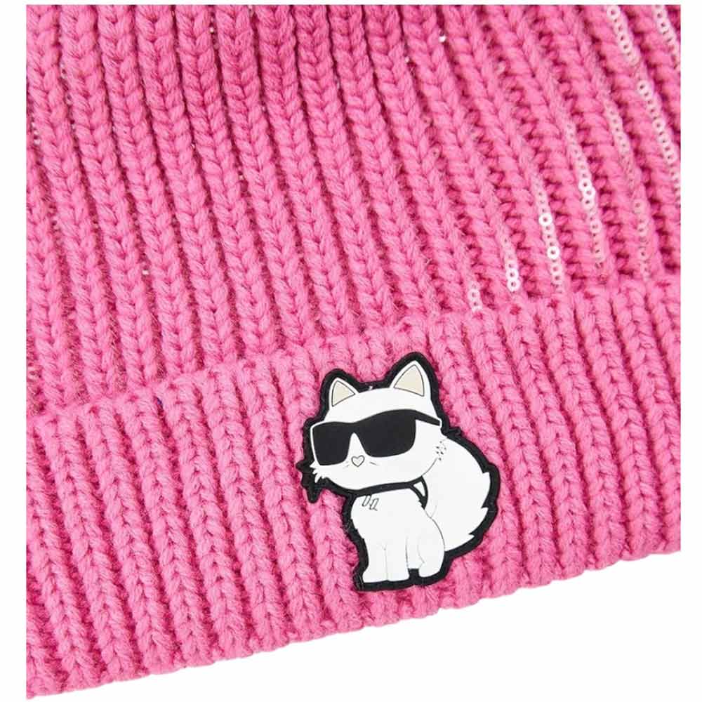 Karl Lagerfeld Cappello fucsia con pompon e logo Z30327