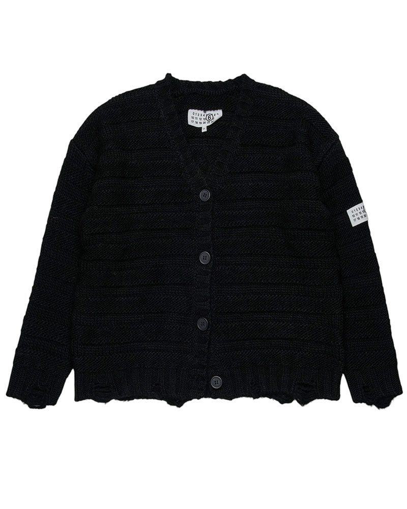 MM6 Maison Margiela Maglia Cardigan in misto lana a coste con rotture M60879-MM06P