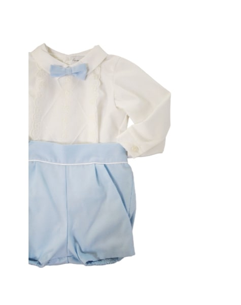 -camicia in franella avorio a maniche lunghe con fasce in pizzo;