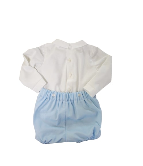 La camicia è legata ai pantaloni con bottoncini a scomparsa.