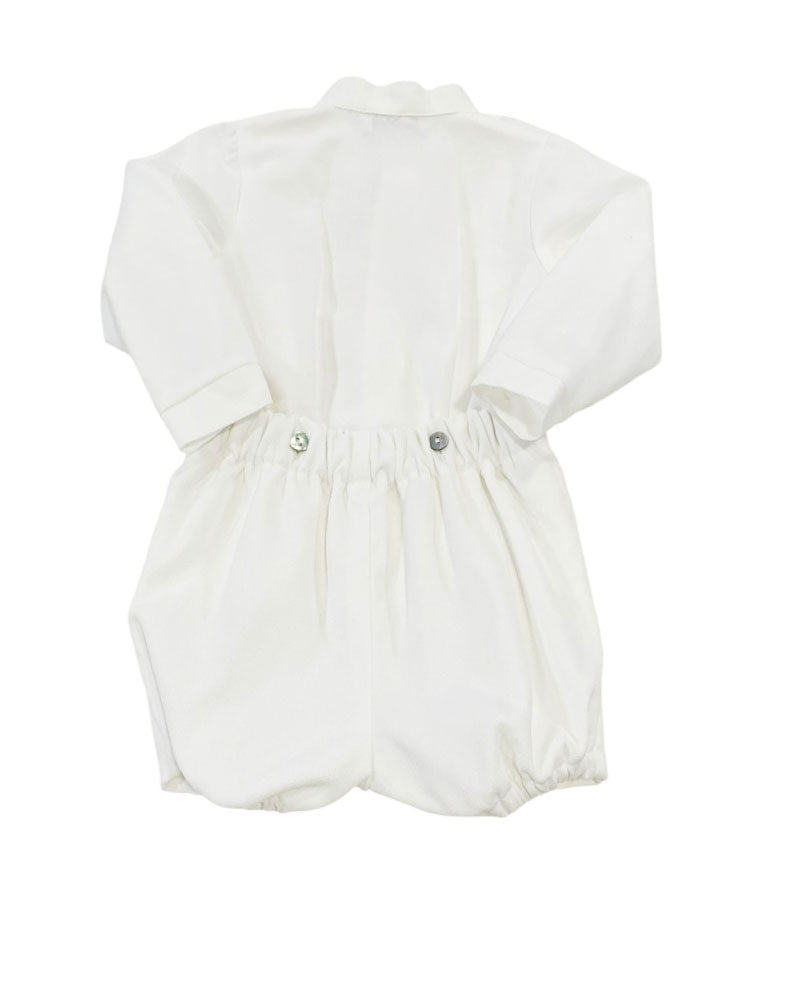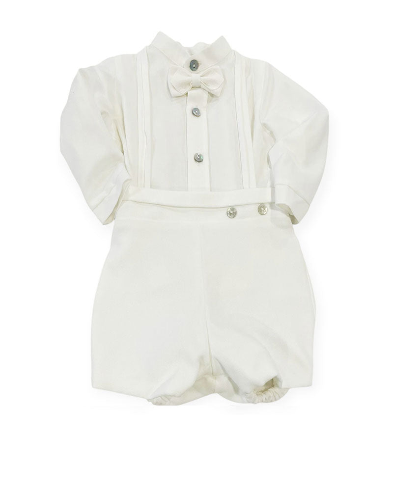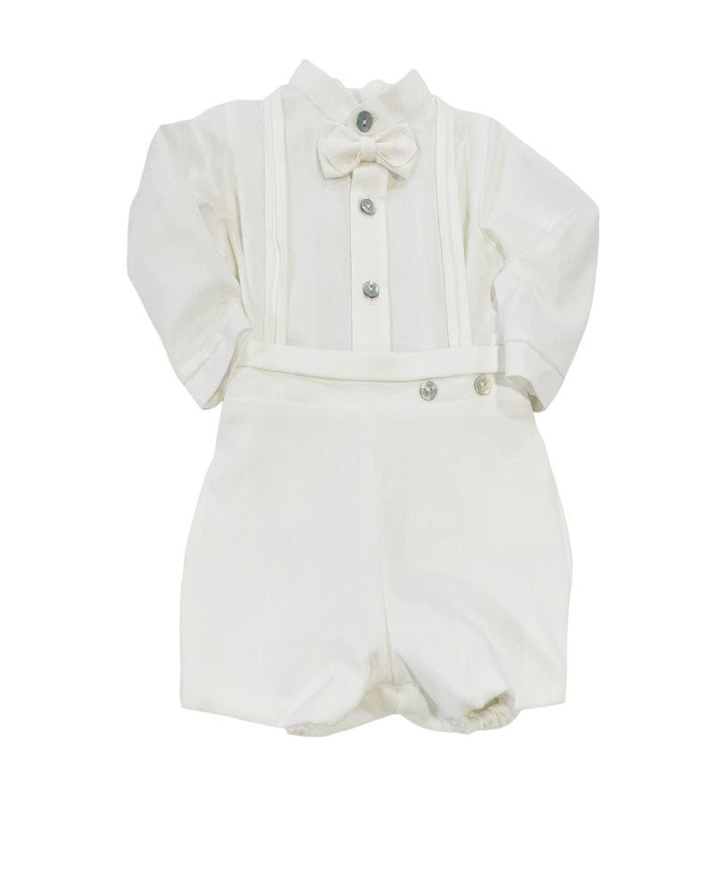 bottoncini sul davanti in madreperla e pantaloncino corto a sbuffo