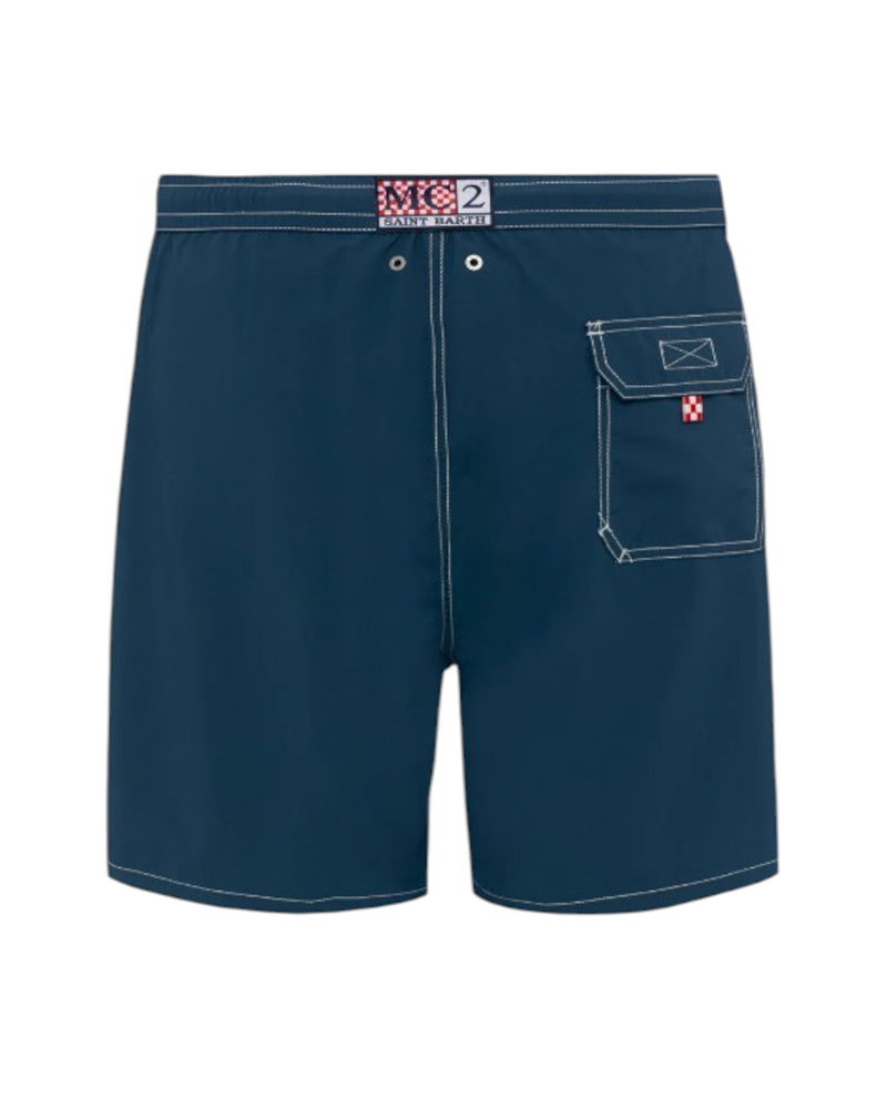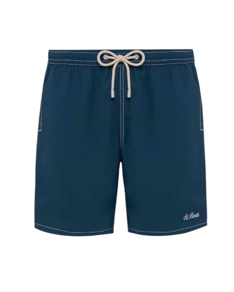 Costume da uomo, modello "SB60EMB", comoda vita elasticizzata, cordoncino regolabile con terminalini marchiati, fodera interna in rete, tasche laterali con cucitura alla francese, tasca posteriore applicata con chiusura in velcro, occhielli firmati progettati per drenare l'acqua e prevenire l'effetto palloncino, etichetta esclusiva MC2 Saint Barth sul retro, tessuto seersucker ad asciugatura rapida, esclusivo dettaglio logo Saint Barth sul fondo gamba, media lunghezza.