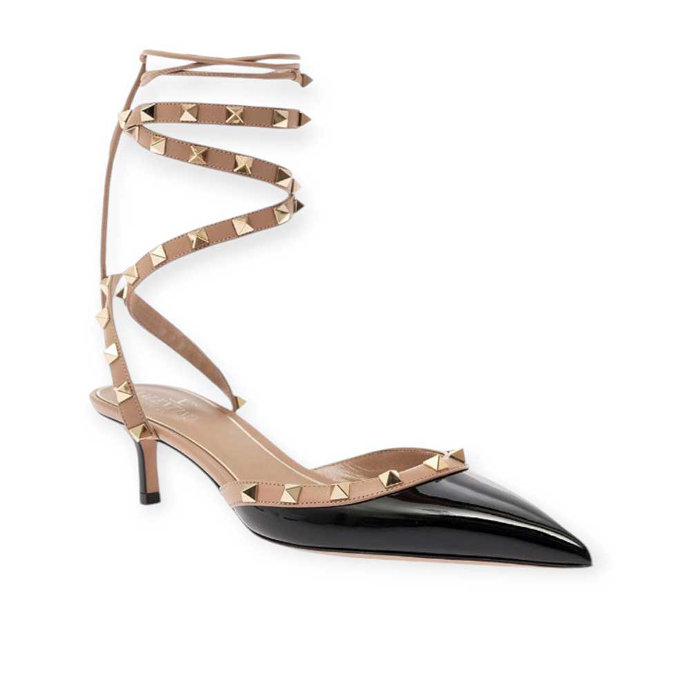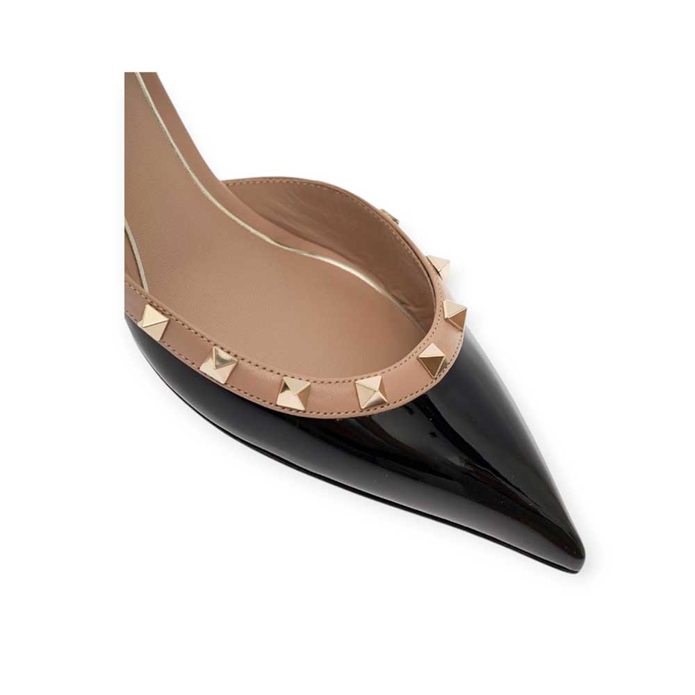 Décolleté in pelle Rockstud nere realizzate in pelle da Valentino Garavani, con punta affilata, cinturino alla caviglia con lacci e dettagli distintivi sul plantare.