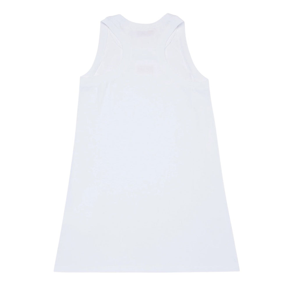Abito da mare realizzato in jersey di cotone, caratterizzato da scollo tondo a costine, maniche a giro e lunghezza sopra il ginocchio. È decorato con logo stampato sul petto.