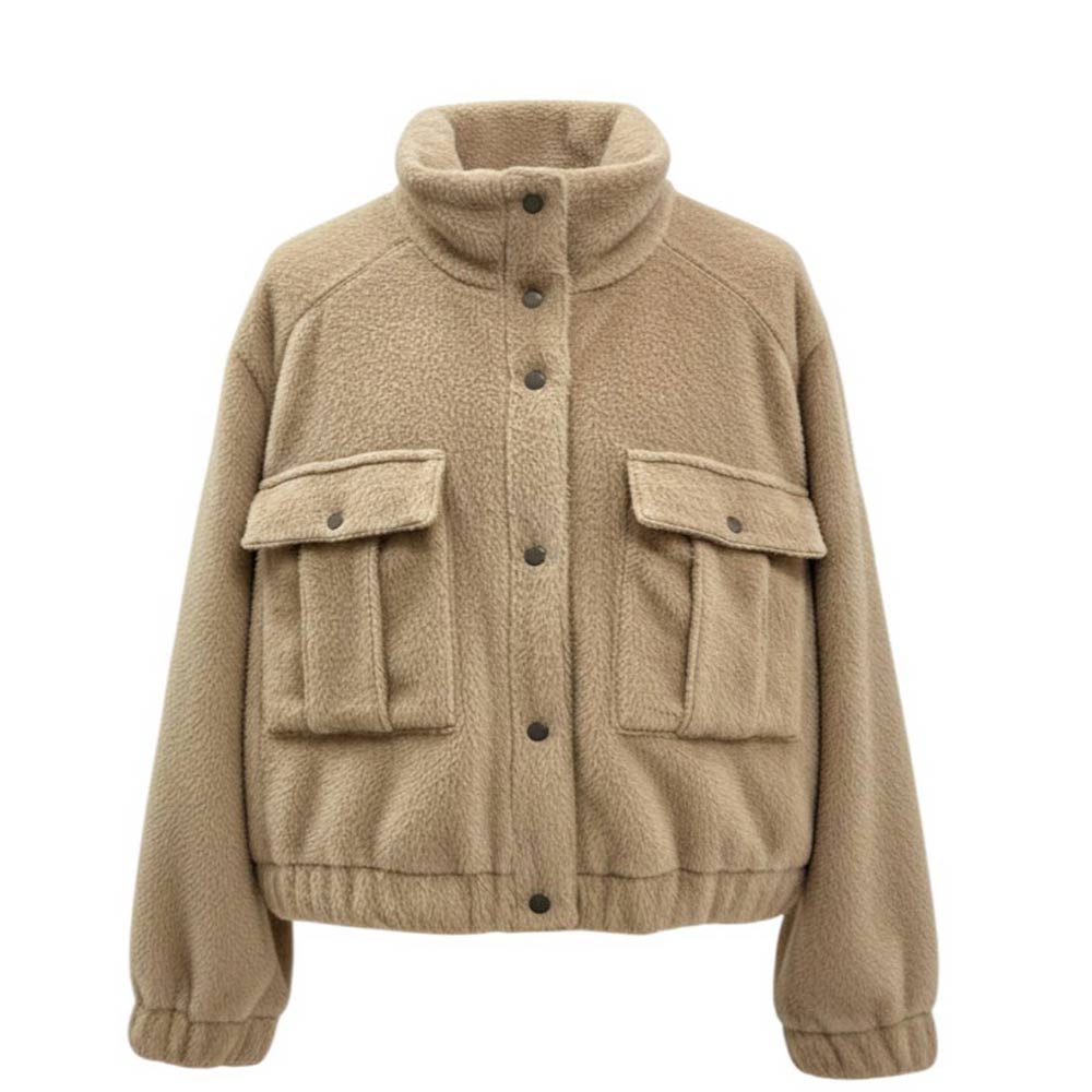 Giacca realizzata in shearling, caratterizzata da collo alto, chiusura frontale con bottoni a pressione, maniche lunghe con polsi elasticizzati, due tasche con patta applicate sul davanti e orlo elasticizzato con coulisse interna. È decorata intorno al collo con dettagli in monile stile Brunello Cucinelli.