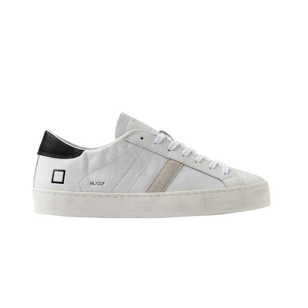 Le Sneakers D.A.T.E. Hill Low Calf Bianco Nero sono realizzate interamente in pelle di alta qualità, con fodera e soletta in pelle che garantiscono comfort e traspirabilità a ogni passo. La tomaia bianca è impreziosita da un inserto laterale in suede chiaro e da un dettaglio in pelle sul tallone, che aggiunge un tocco luminoso e contemporaneo al design.