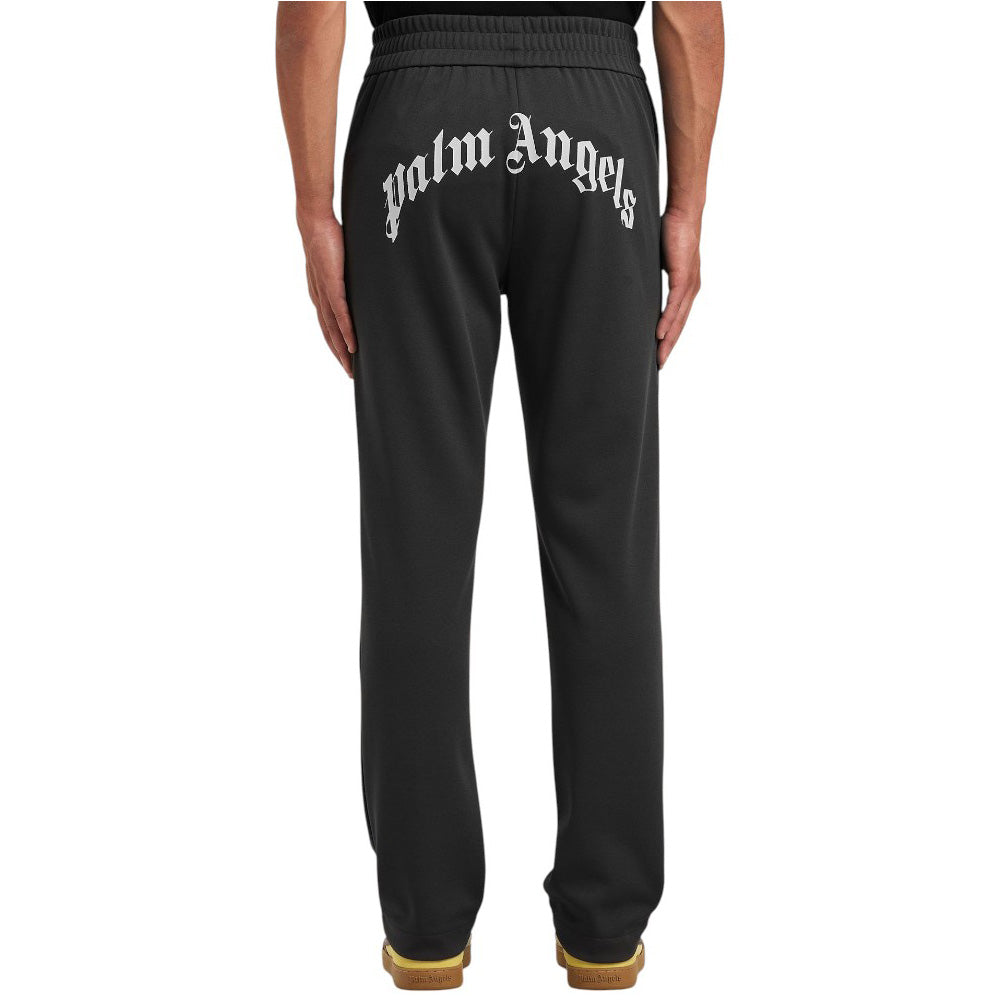 Pantaloni track in acetato di Palm Angels, caratterizzati da vita elasticizzata, due tasche laterali a filetto, gamba dritta. Sono decorati con stampa logo curved sulla parte posteriore.