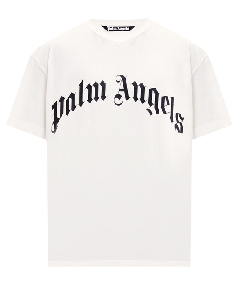 T-shirt oversize realizzata in jersey di cotone, caratterizzata da collo tondo, maniche corte e urlo curvo. È decorata con stampa logo curved sul davanti.