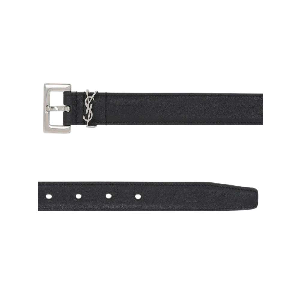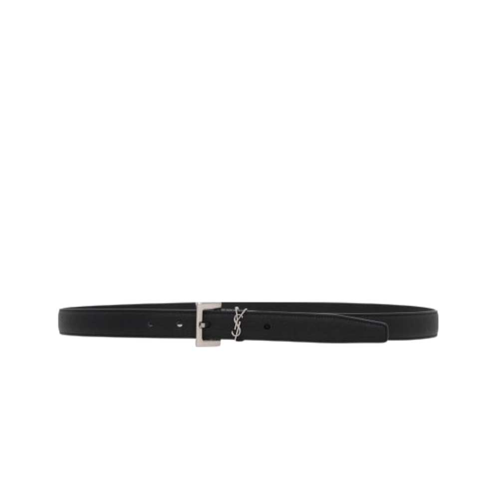 Questa cintura sottile Yves Saint Laurent è realizzata in pelle conciata senza cromo né metalli, garantendo una qualità superiore e una maggiore sostenibilità. Presenta una fibbia quadrata regolabile e un passante con il celebre motivo Cassandre, entrambi in metallo argentato, che aggiungono un tocco di eleganza discreta. Ideale per completare con raffinatezza ogni outfit, unisce design raffinato e materiali attentamente selezionati.