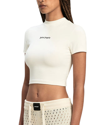 Palm Angels T-shirt avorio cropped in jersey con logo PWAA077C99JER0010310