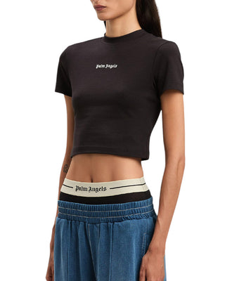 Palm Angels T-shirt nera cropped in jersey con logo PWAA077C99JER0011003
