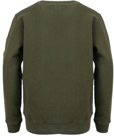 Felpa girocollo, tasca applicata con simbolo sulla spalla.