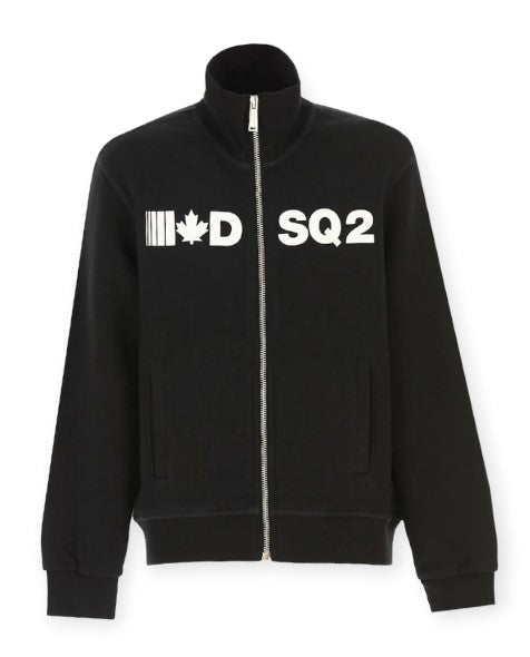 Felpa con zip, logo in contrasto stampato sul davanti, tasche a filetto.