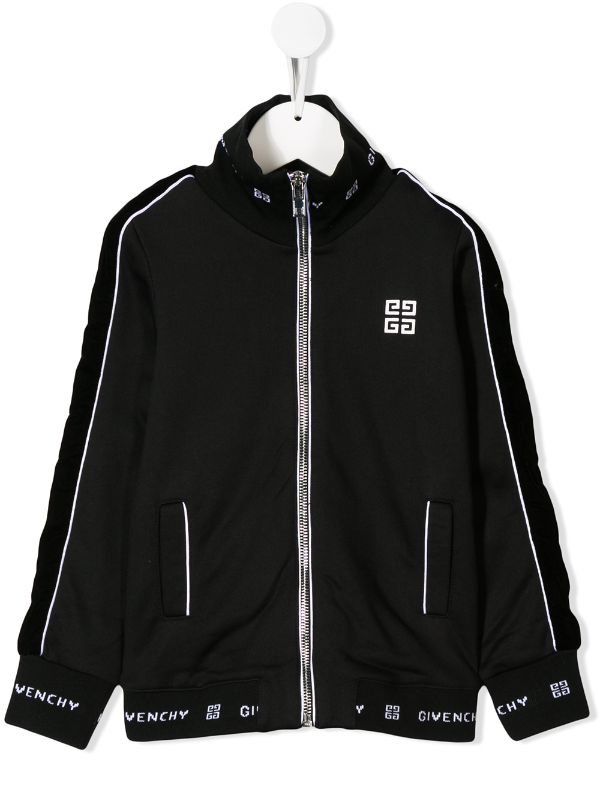 Felpa con zip, tasche a filetto, logo e simbolo sulle maniche e sul collo.