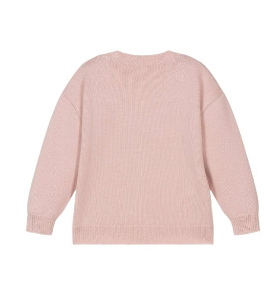 Maglia oversize con collo rotondo in lana, logo intarsiato e ricamato sul davanti in contrasto, finiture a costa.