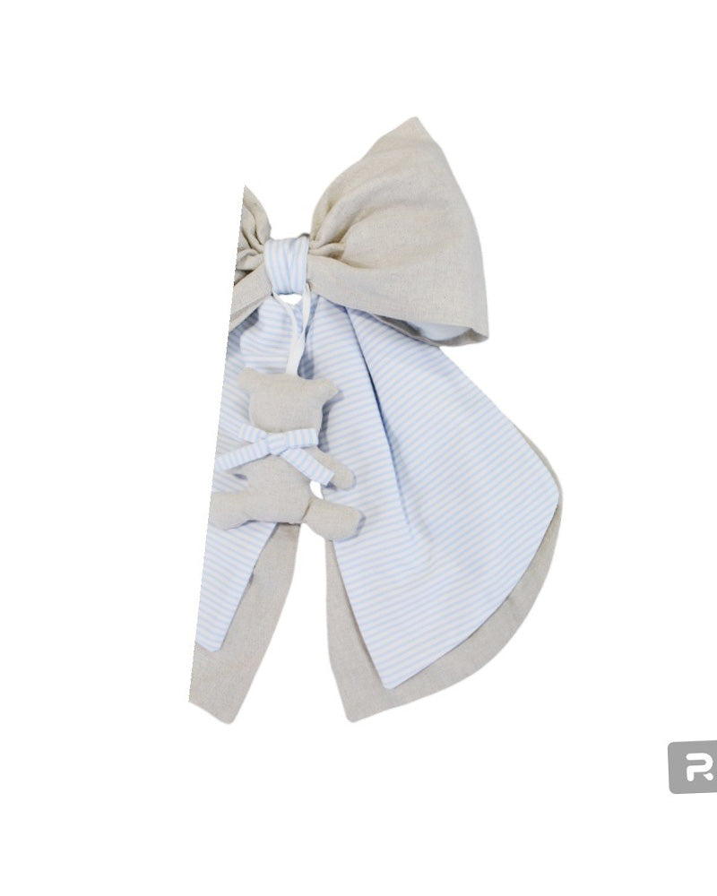 fiocco nascita in piquet a righe e lino